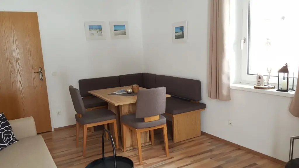 In unserem Ferienhaus haben wir drei geräumige Ferienwohnungen. Natürlich mit allem Komfort ausgestattet. Die Apartments verfügen über eine Sitzecke mit Esstisch und eine gut ausgestattete Küche.